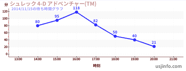 • シュレック 4-D アドベンチャー(TM)$B$N(B2014年11月15日の待ち時間
