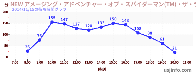 • NEW アメージング・アドベンチャー・オブ・スパイダーマン(TM)・ザ・ライド 4K3D$B$N(B2014年11月15日の待ち時間