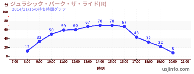 • ジュラシック・パーク・ザ・ライド(R)$B$N(B2014年11月15日の待ち時間