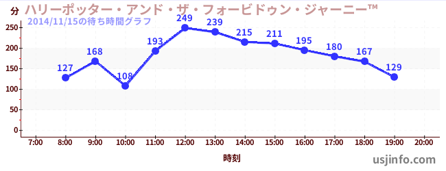 • ハリーポッター・アンド・ザ・フォービドゥン・ジャーニー™$B$N(B2014年11月15日の待ち時間