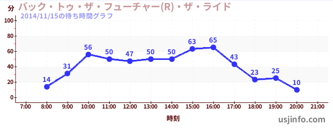 • バック・トゥ・ザ・フューチャー(R)・ザ・ライド$B$N(B2014年11月15日の待ち時間