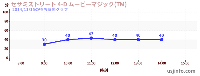 • セサミストリート 4-D ムービーマジック(TM)$B$N(B2014年11月15日の待ち時間