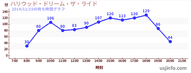• ハリウッド・ドリーム・ザ・ライド$B$N(B2014年11月15日の待ち時間