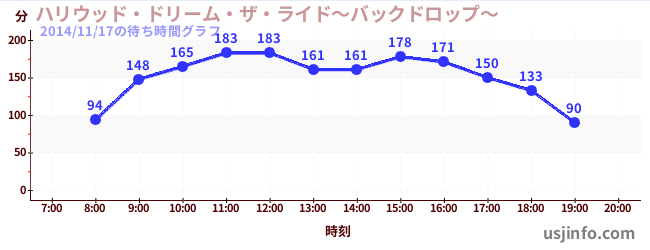 • ハリウッド・ドリーム・ザ・ライド〜バックドロップ〜$B$N(B2014年11月17日の待ち時間