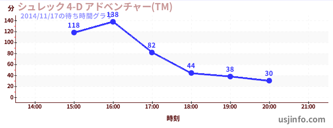• シュレック 4-D アドベンチャー(TM)$B$N(B2014年11月17日の待ち時間