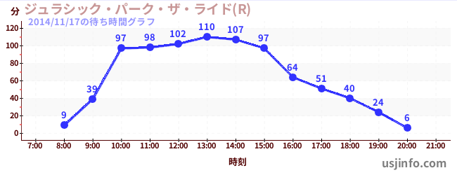 • ジュラシック・パーク・ザ・ライド(R)$B$N(B2014年11月17日の待ち時間