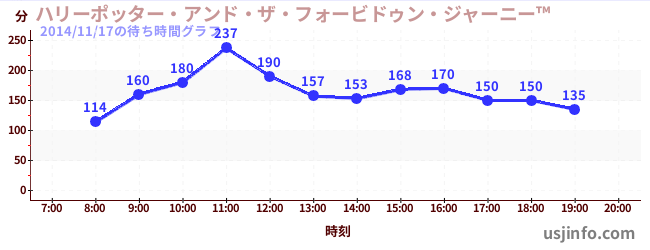 • ハリーポッター・アンド・ザ・フォービドゥン・ジャーニー™$B$N(B2014年11月17日の待ち時間
