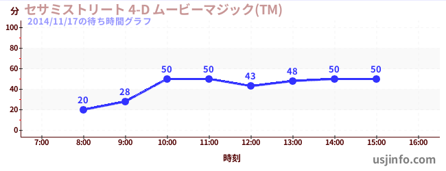 • セサミストリート 4-D ムービーマジック(TM)$B$N(B2014年11月17日の待ち時間