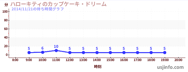 • ハローキティのカップケーキ・ドリーム$B$N(B2014年11月21日の待ち時間