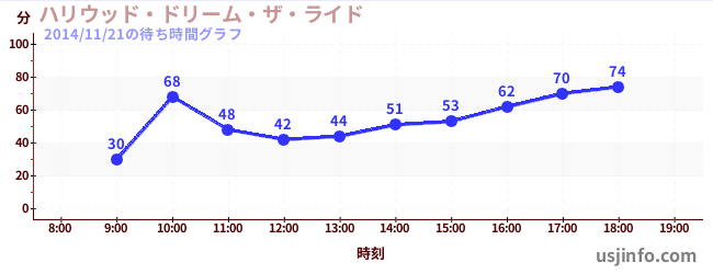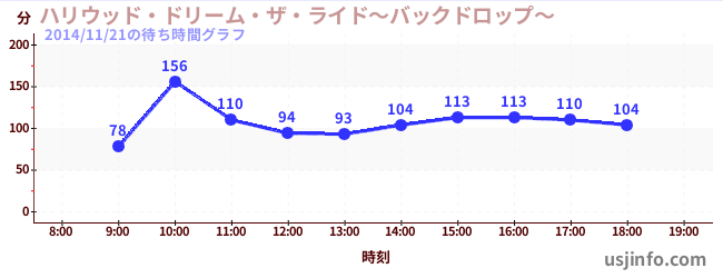 • ハリウッド・ドリーム・ザ・ライド〜バックドロップ〜$B$N(B2014年11月21日の待ち時間