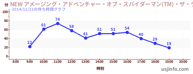 • NEW アメージング・アドベンチャー・オブ・スパイダーマン(TM)・ザ・ライド 4K3D$B$N(B2014年11月21日の待ち時間