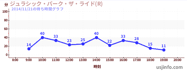 • ジュラシック・パーク・ザ・ライド(R)$B$N(B2014年11月21日の待ち時間