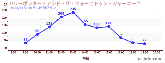 • ハリーポッター・アンド・ザ・フォービドゥン・ジャーニー™$B$N(B2014年11月21日の待ち時間