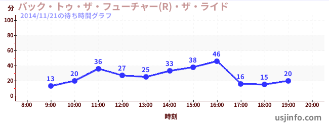 • バック・トゥ・ザ・フューチャー(R)・ザ・ライド$B$N(B2014年11月21日の待ち時間