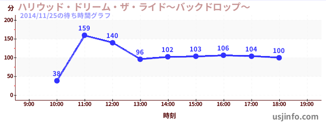 • ハリウッド・ドリーム・ザ・ライド〜バックドロップ〜$B$N(B2014年11月25日の待ち時間