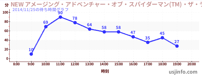 • NEW アメージング・アドベンチャー・オブ・スパイダーマン(TM)・ザ・ライド 4K3D$B$N(B2014年11月25日の待ち時間
