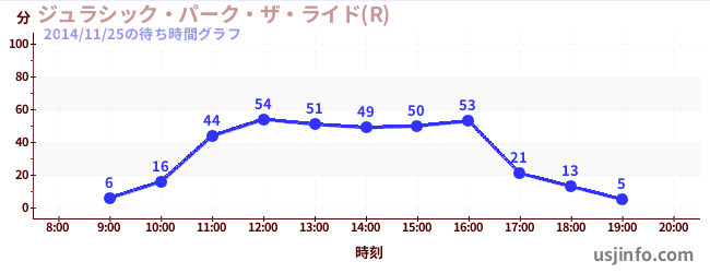 • ジュラシック・パーク・ザ・ライド(R)$B$N(B2014年11月25日の待ち時間