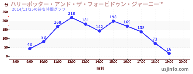 • ハリーポッター・アンド・ザ・フォービドゥン・ジャーニー™$B$N(B2014年11月25日の待ち時間