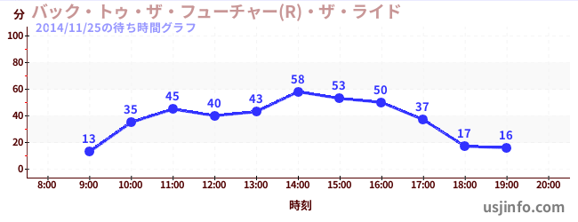 • バック・トゥ・ザ・フューチャー(R)・ザ・ライド$B$N(B2014年11月25日の待ち時間