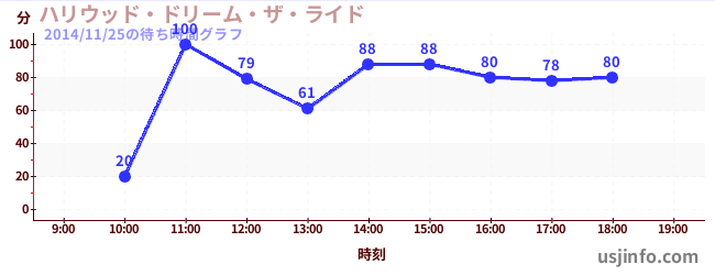 • ハリウッド・ドリーム・ザ・ライド$B$N(B2014年11月25日の待ち時間