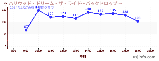 • ハリウッド・ドリーム・ザ・ライド〜バックドロップ〜$B$N(B2014年11月27日の待ち時間