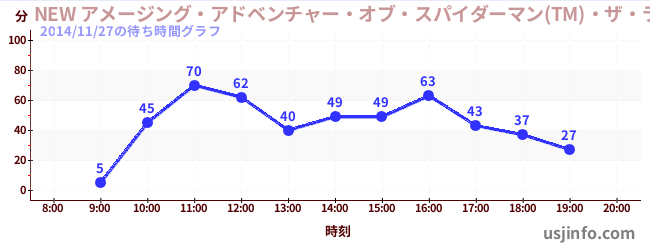 • NEW アメージング・アドベンチャー・オブ・スパイダーマン(TM)・ザ・ライド 4K3D$B$N(B2014年11月27日の待ち時間