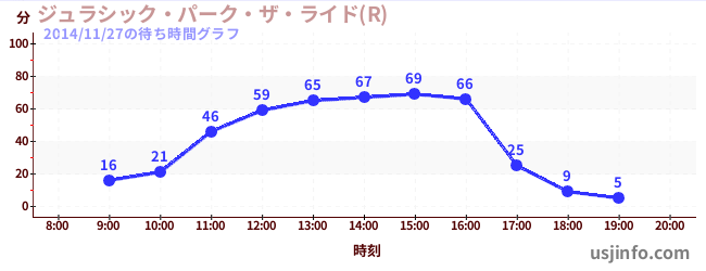• ジュラシック・パーク・ザ・ライド(R)$B$N(B2014年11月27日の待ち時間