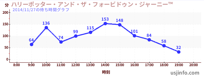 • ハリーポッター・アンド・ザ・フォービドゥン・ジャーニー™$B$N(B2014年11月27日の待ち時間