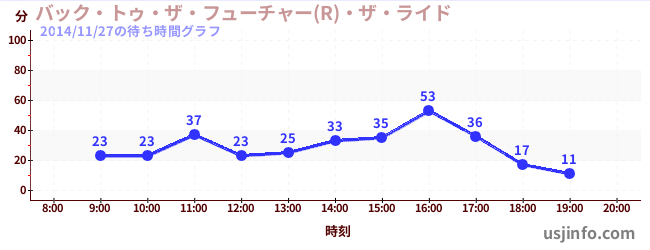 • バック・トゥ・ザ・フューチャー(R)・ザ・ライド$B$N(B2014年11月27日の待ち時間