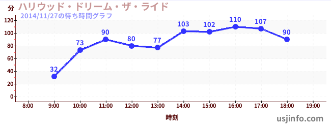 • ハリウッド・ドリーム・ザ・ライド$B$N(B2014年11月27日の待ち時間