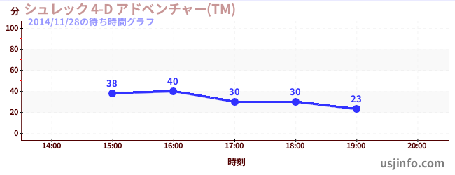 • シュレック 4-D アドベンチャー(TM)$B$N(B2014年11月28日の待ち時間