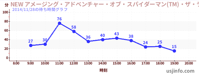 • NEW アメージング・アドベンチャー・オブ・スパイダーマン(TM)・ザ・ライド 4K3D$B$N(B2014年11月28日の待ち時間