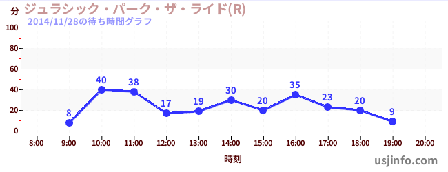 • ジュラシック・パーク・ザ・ライド(R)$B$N(B2014年11月28日の待ち時間