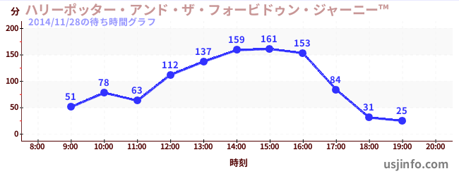 • ハリーポッター・アンド・ザ・フォービドゥン・ジャーニー™$B$N(B2014年11月28日の待ち時間