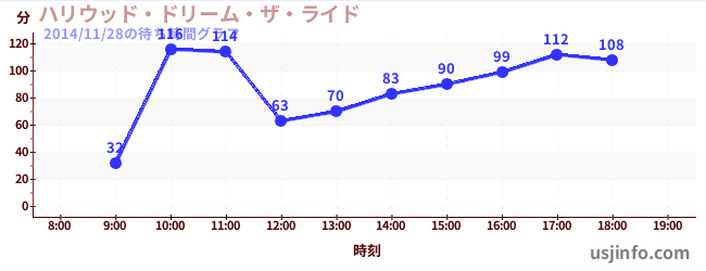 • ハリウッド・ドリーム・ザ・ライド$B$N(B2014年11月28日の待ち時間