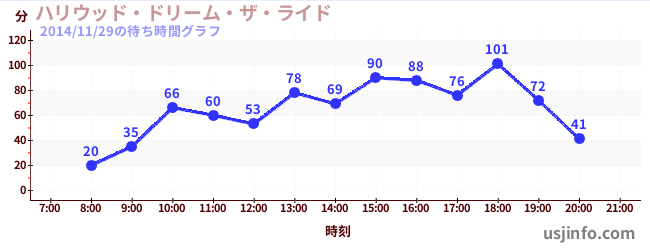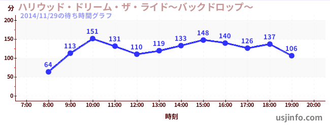 • ハリウッド・ドリーム・ザ・ライド〜バックドロップ〜$B$N(B2014年11月29日の待ち時間