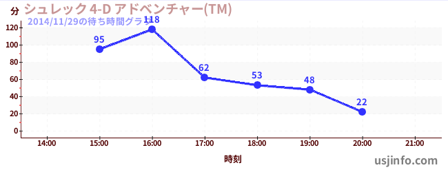 • シュレック 4-D アドベンチャー(TM)$B$N(B2014年11月29日の待ち時間
