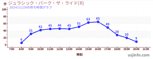 • ジュラシック・パーク・ザ・ライド(R)$B$N(B2014年11月29日の待ち時間
