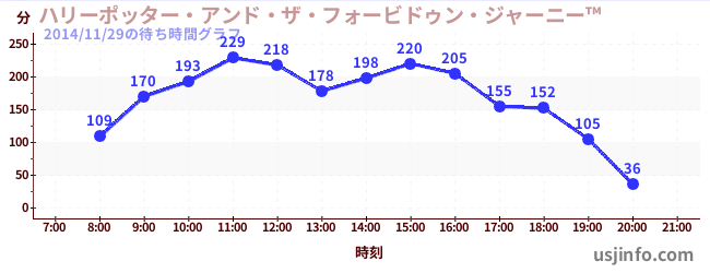 • ハリーポッター・アンド・ザ・フォービドゥン・ジャーニー™$B$N(B2014年11月29日の待ち時間