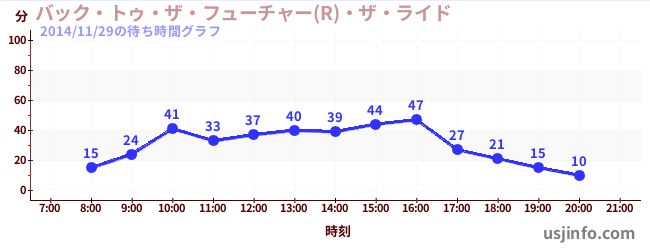 • バック・トゥ・ザ・フューチャー(R)・ザ・ライド$B$N(B2014年11月29日の待ち時間