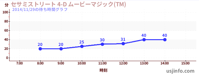 • セサミストリート 4-D ムービーマジック(TM)$B$N(B2014年11月29日の待ち時間