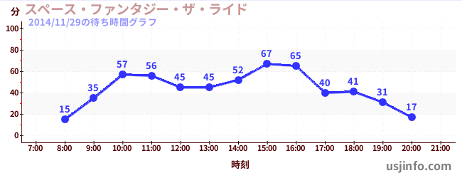 • スペース・ファンタジー・ザ・ライド$B$N(B2014年11月29日の待ち時間