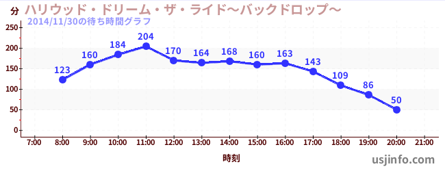 • ハリウッド・ドリーム・ザ・ライド〜バックドロップ〜$B$N(B2014年11月30日の待ち時間