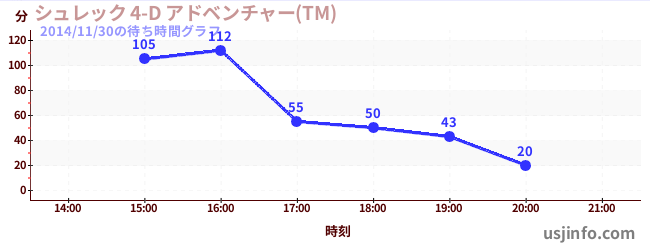 • シュレック 4-D アドベンチャー(TM)$B$N(B2014年11月30日の待ち時間