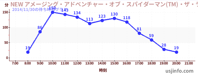 • NEW アメージング・アドベンチャー・オブ・スパイダーマン(TM)・ザ・ライド 4K3D$B$N(B2014年11月30日の待ち時間