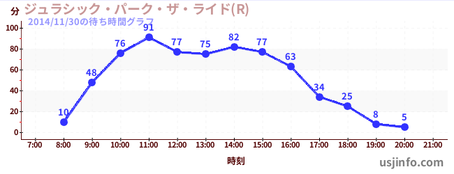 • ジュラシック・パーク・ザ・ライド(R)$B$N(B2014年11月30日の待ち時間