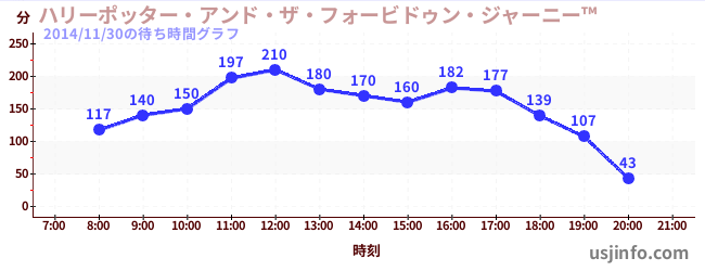 • ハリーポッター・アンド・ザ・フォービドゥン・ジャーニー™$B$N(B2014年11月30日の待ち時間
