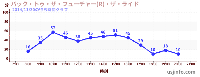 • バック・トゥ・ザ・フューチャー(R)・ザ・ライド$B$N(B2014年11月30日の待ち時間