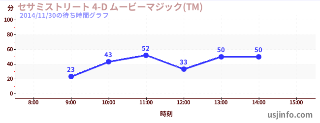 • セサミストリート 4-D ムービーマジック(TM)$B$N(B2014年11月30日の待ち時間