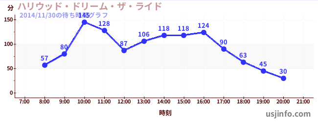 • ハリウッド・ドリーム・ザ・ライド$B$N(B2014年11月30日の待ち時間